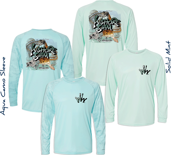 Do you want to show off the fact that you hit an Inshore Slam? Do it in style with one of these 3.5 oz, 100% microfiber performance polyester fishing shirt that offers UPF 50+ Protection with an anti-microbial and wrinkle-resistant finish. These performance long sleeves feature a design of three skeletons, a Sea Trout, Redfish, and, Snook done in a unique and wild way that only Withering Wilds™ could deliver. Our performance apparel offers amazing one of a kind graphics that also keep you cool, dry, and safe from the sun helping you stay on the water longer and catching MORE FISH!